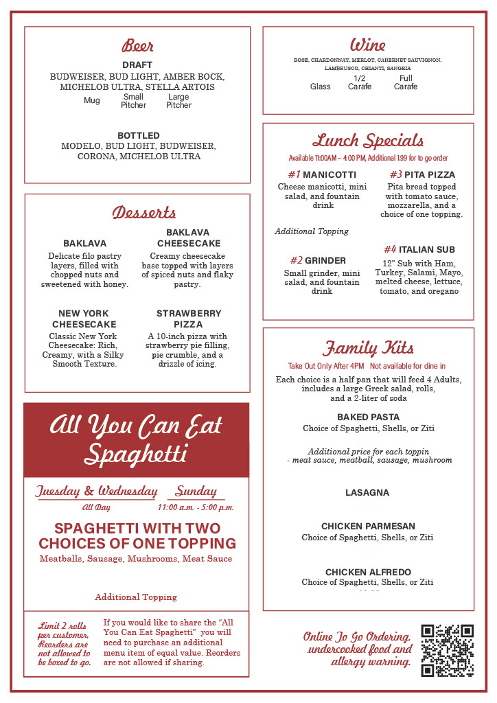 please inform staff of any food allergies or dietary requirements prior to ordering.